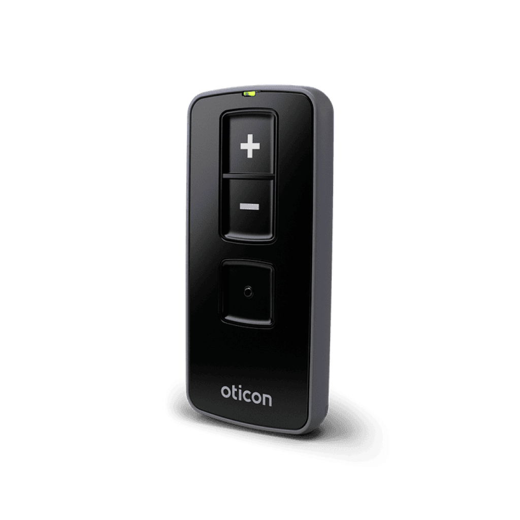O Controle Remoto Oticon oferece uma forma intuitiva, direta e discreta de ajustar os seus aparelhos auditivos. Com o controle remoto, você pode realizar os ajustes diários mais comuns sem chamar a atenção para os seus aparelhos auditivos.